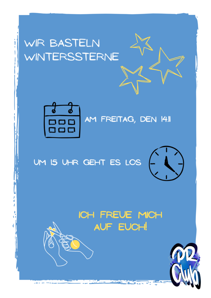 Aktuelles Bastelangebot am Freitag den 14.11.25 ab 15 Uhr Neue Öffnungszeiten Neue Regel im P.R.-Club Clubteam
